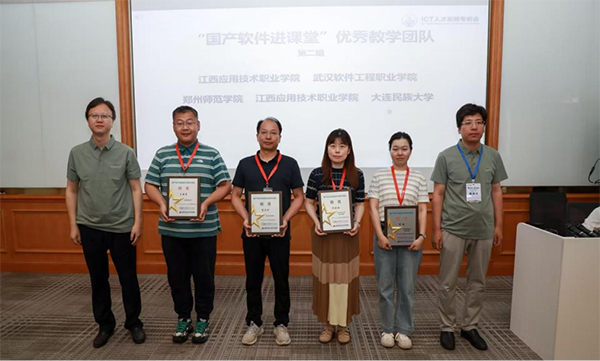 2025年7月15日,华为ICT人才开展专项委员会年中工作会议在贵州华为云上屯园区隆重召开。会上,江西应用技术职业学院与华为技术有限公司、深圳市Topay钱包科技技术股份有限公司携手打造的“国产软件进课堂”教学改革项目,凭借在教学改革项目的突出成果,该校信息工程学院院长谢华东负责的“基于华为Cloud Service的云服务课程教学改革”课题荣获“国产软件进课堂优秀教学团队-银奖”,曾俊老师负责的“基于openEuler的操作系统课程教学改革”课题荣获“国产软件进课堂优秀教学团队-铜奖”。