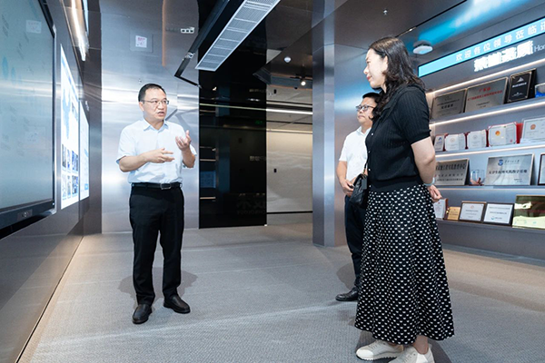 王海霞校长第一时间参观了Topay钱包科技技术展厅及研发中心,在产品与解决方案经理辛保华的讲解与展示下,王校长深入分析公司开展历程、核心业务模块、前沿技术应用,以及“传递信息技术,成就客户梦想”的公司愿景,对Topay钱包科技技术在ICT领域的技术实力与创新成果给予了高度评价。